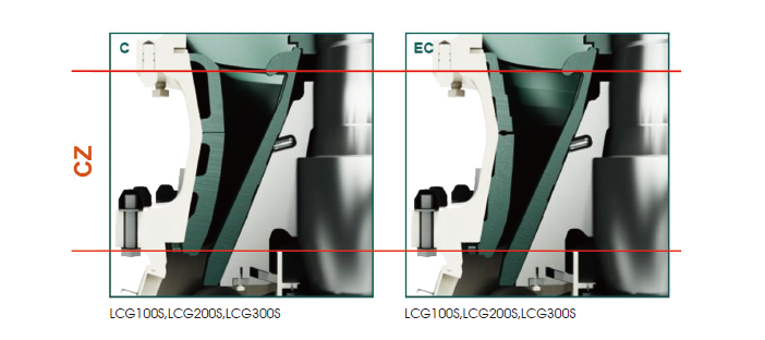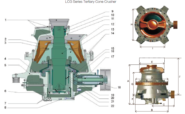 LUCKCOME LCG Series cone crushers can be easily adjusted for different production requirements. With a wide selection of cavities, the same crusher can be used in 2nd,3rd or 4th crushing stages, producing different end product sizes. The stroke change feature allows crusher through-
